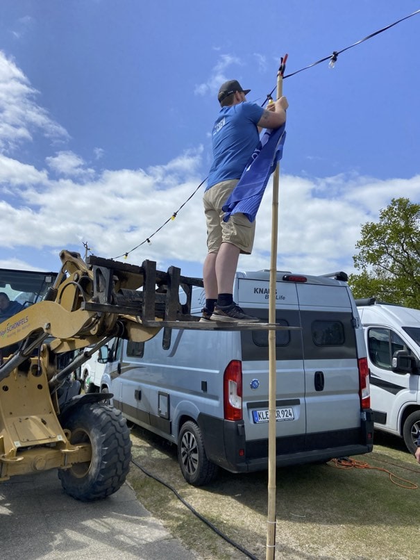 Allgemeine Aufbauarbeiten: Banner aufhängen, Aufbau von Biergarnituren / Bauzäunen, Campingbereiche abflattern, etc.